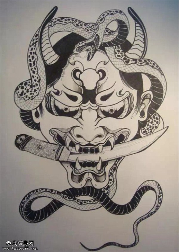 能面万媚纹身手稿_52张日式能剧面具纹身手稿图案素材欣赏