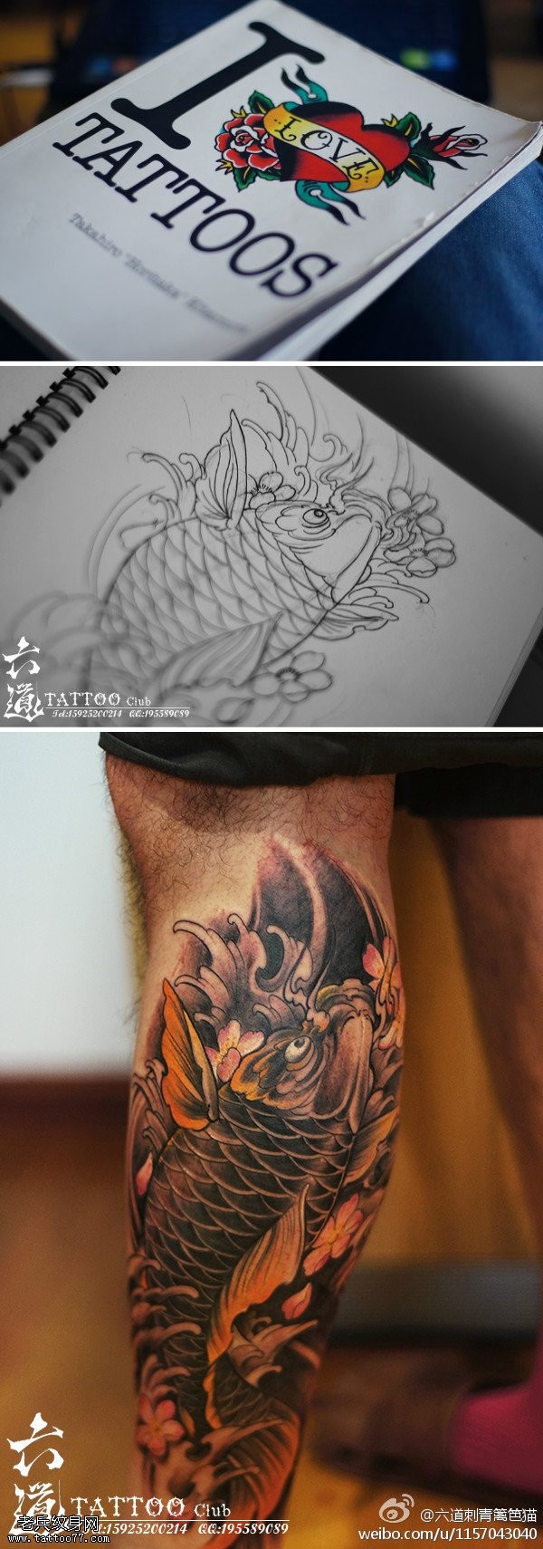 传统鲤鱼花小腿纹身_腿部纹身图案大全_纹身图吧