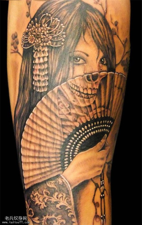 纹身图吧分享一款人物艺妓纹身图案