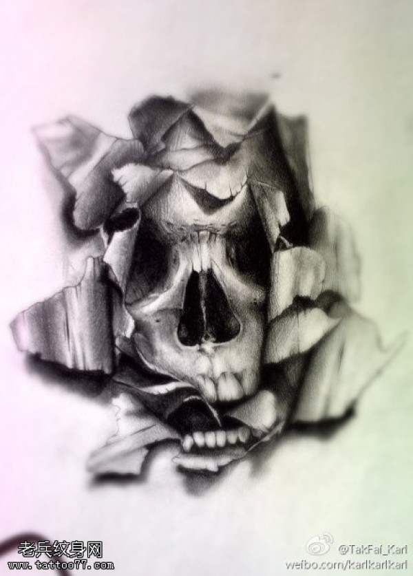 黑灰欧美骷髅玫瑰花纹身手稿图片