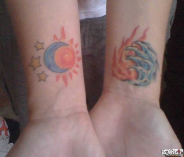 手臂上的太阳和月亮纹身