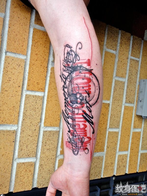小臂上杂乱的文字组合