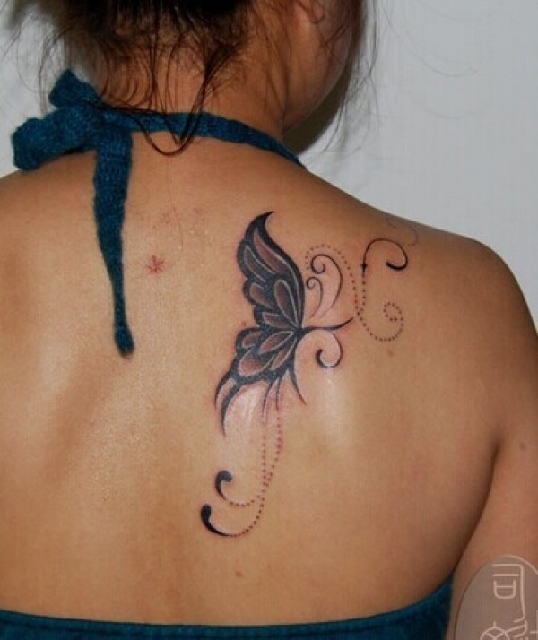 女生肩花纹身_15张女性双肩对称的肩花纹身图案作品图片