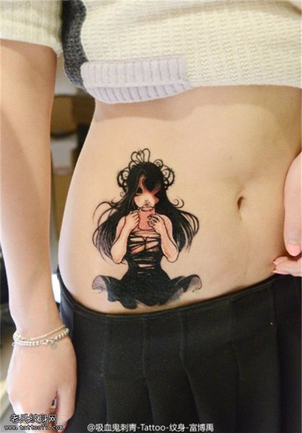女性腰部莲花花纹刺青_腰部纹身图案大全_纹身图吧