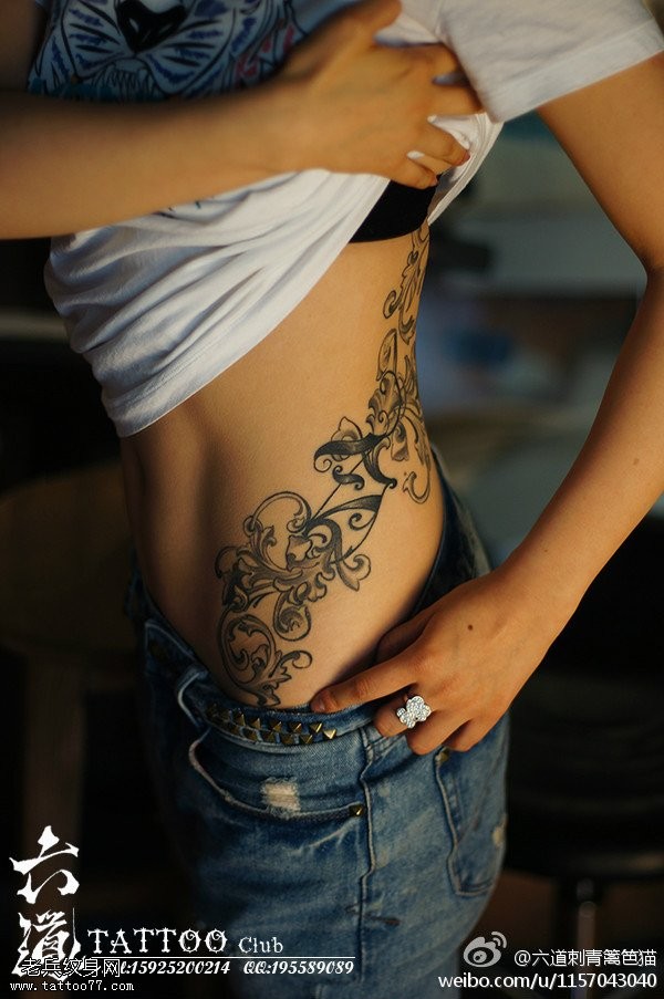 女性腰部莲花花纹刺青_腰部纹身图案大全_纹身图吧