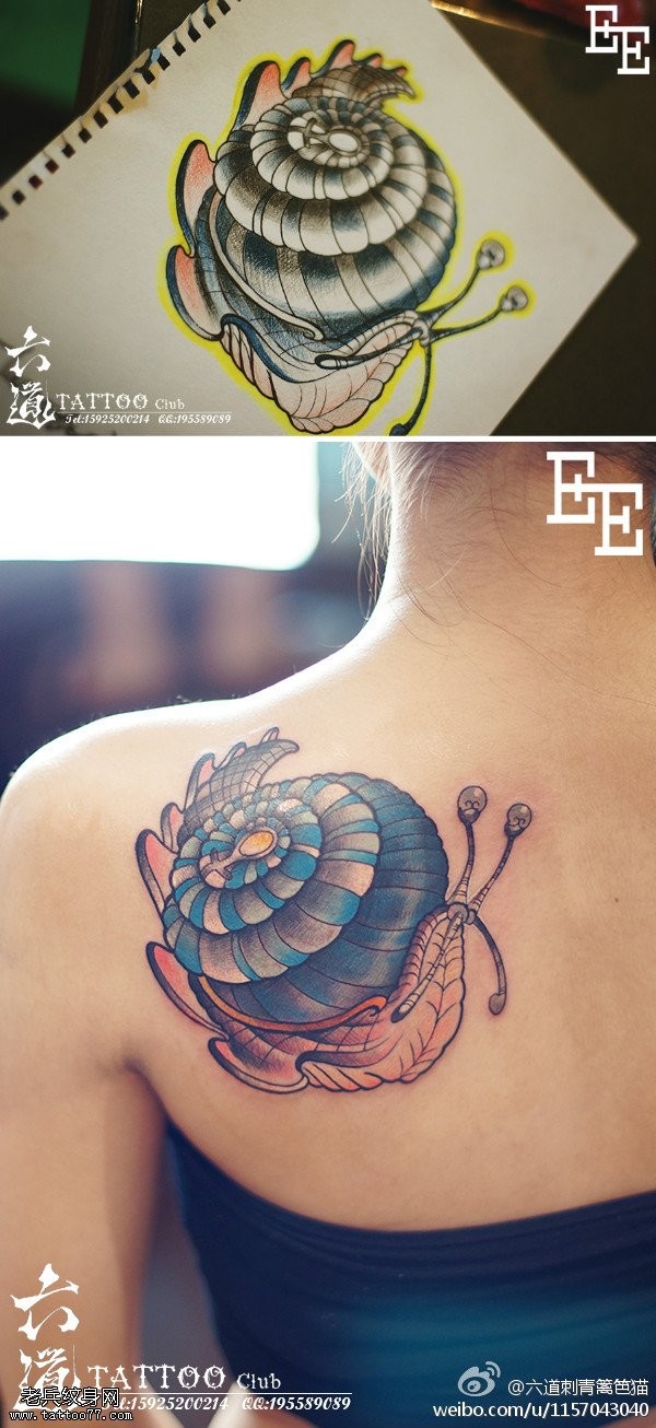 蓝色蠕动小清新二次元蜗牛纹身图案
