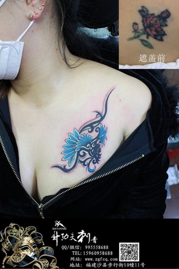 女性大花胸纹身_43张霸气漂亮的女性大花胸纹身图案作品
