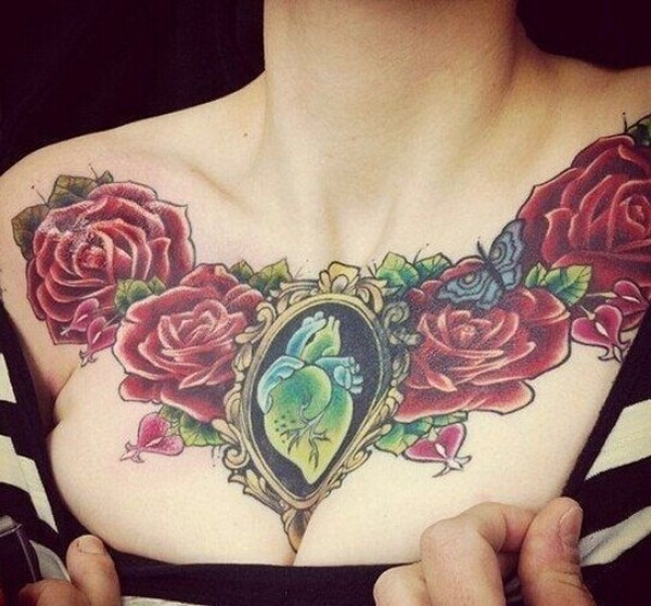 女性大花胸纹身_43张霸气漂亮的女性大花胸纹身图案作品