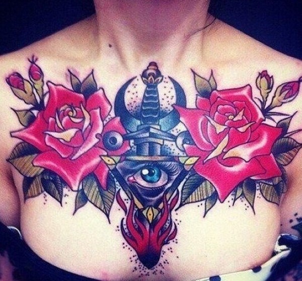 女性大花胸纹身_43张霸气漂亮的女性大花胸纹身图案作品