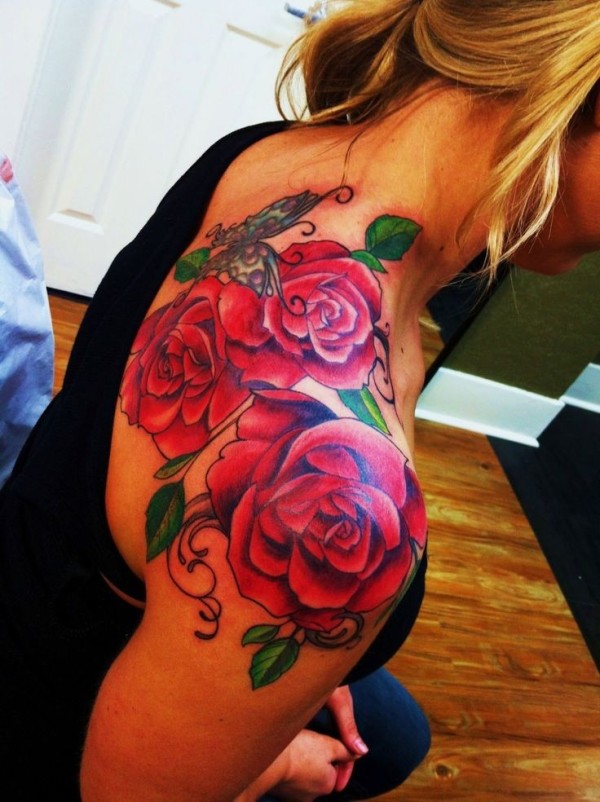 女生肩花纹身_15张女性双肩对称的肩花纹身图案作品图片