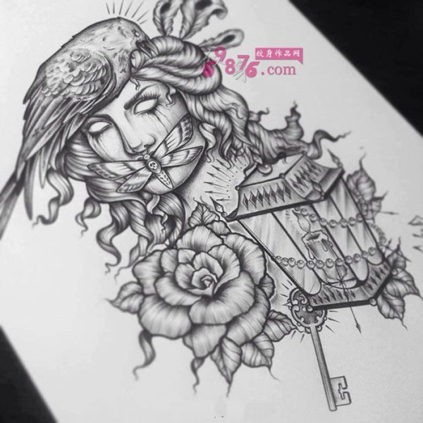 能面万媚纹身手稿_52张日式能剧面具纹身手稿图案素材欣赏