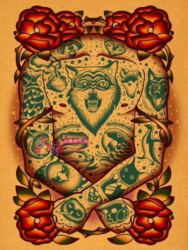 一组18张漂亮的欧美newschool动物纹身手稿图案