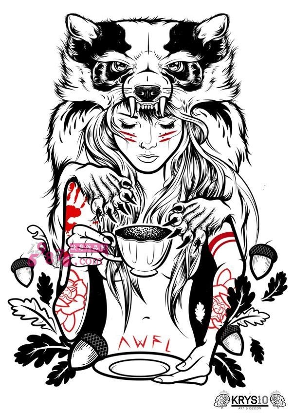 一组18张漂亮的欧美newschool动物纹身手稿图案
