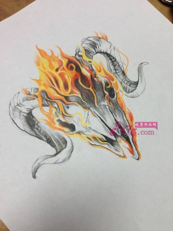 火焰羊角纹身手稿图片