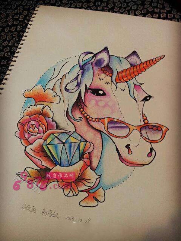 一组18张漂亮的欧美newschool动物纹身手稿图案