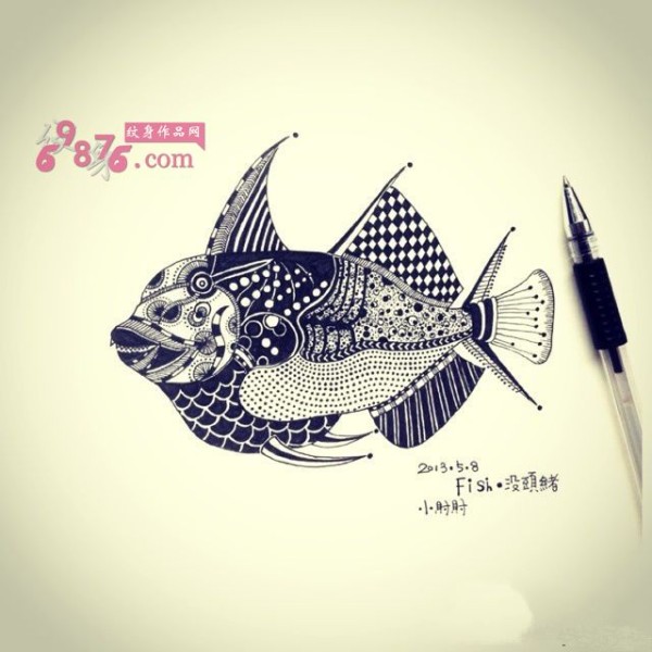 创意梵花鱼纹身手稿图片