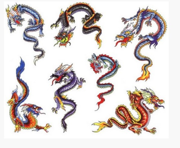 龙纹身手稿_一组老传统黑灰龙手稿纹身图案