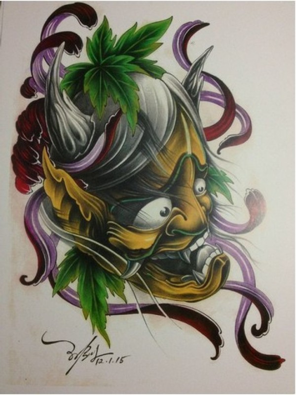 能面万媚纹身手稿_52张日式能剧面具纹身手稿图案素材欣赏