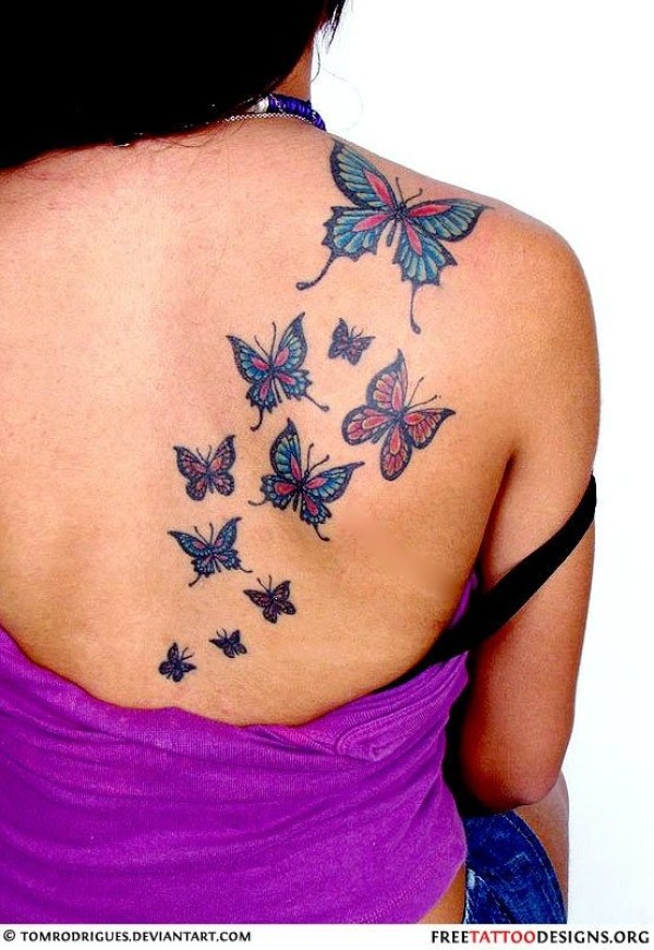 女生肩部漂亮的蝴蝶纹身