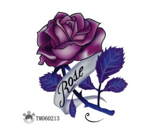 超漂亮3D紫玫瑰花纹身手稿图图片