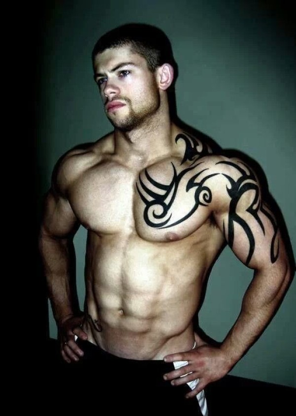 时尚阳光的欧美帅哥的图腾半甲纹身