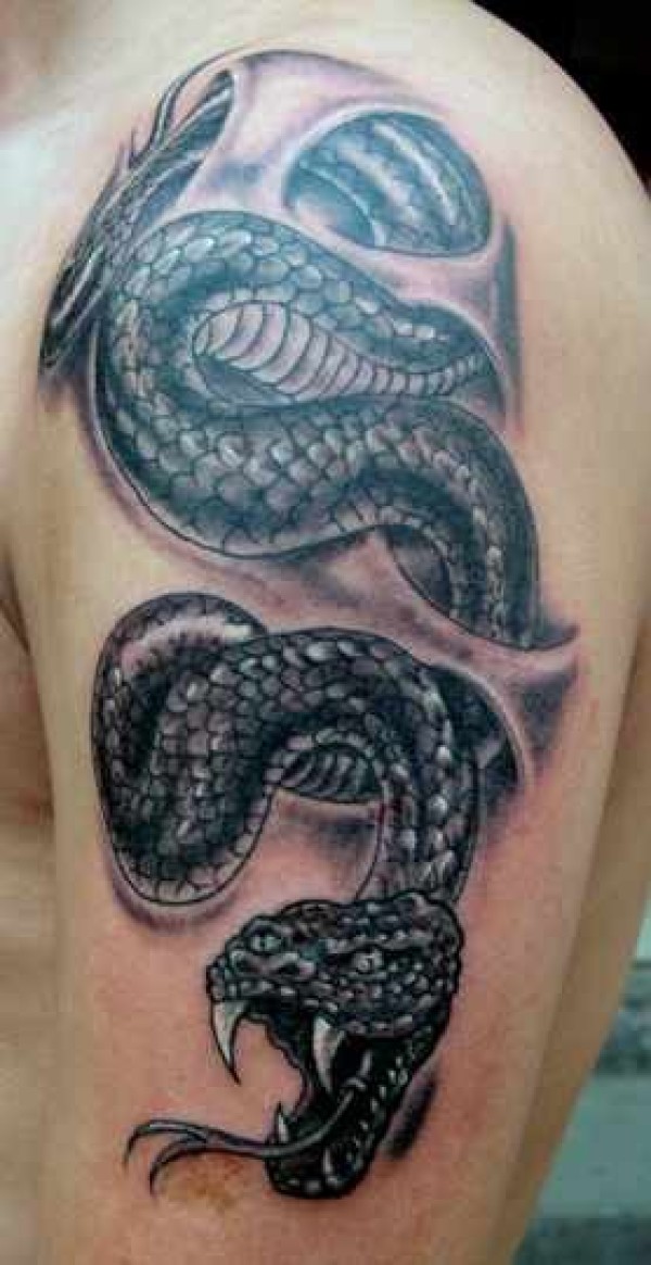 手臂上一条逼真的蛇纹身(很有个性的哦)