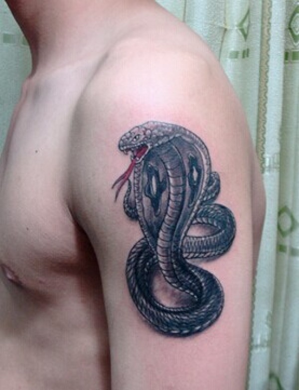 手臂上一条逼真的蛇纹身(很有个性的哦)