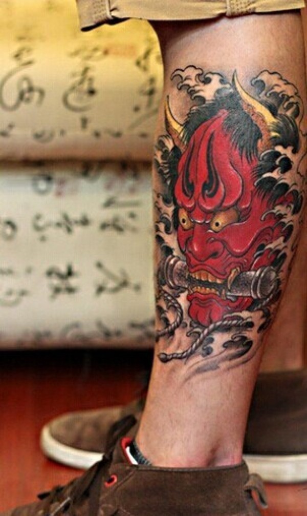小腿部一款个性的般若纹身