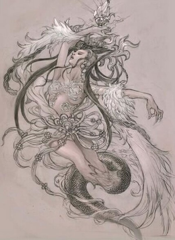 非常漂亮的蛇尾仙女纹身手稿图图片