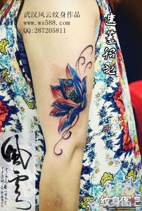 手臂蓝莲花纹身