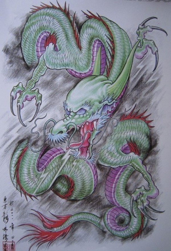 龙纹身手稿_一组老传统黑灰龙手稿纹身图案