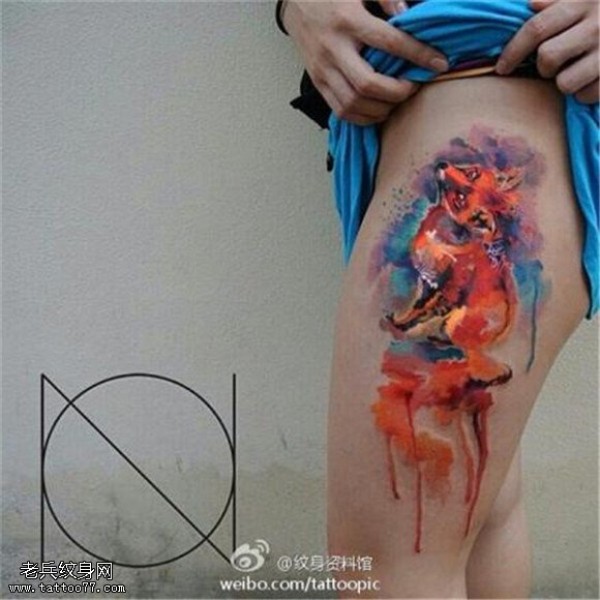 腿部彩色九尾狐纹身图片