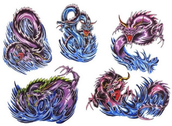 海浪中的蛟龙图案纹身手稿欣赏图片