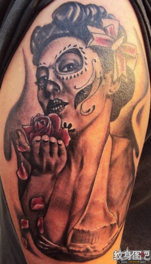 女性肩部肖像刺青_肖像纹身图案大全_纹身图吧