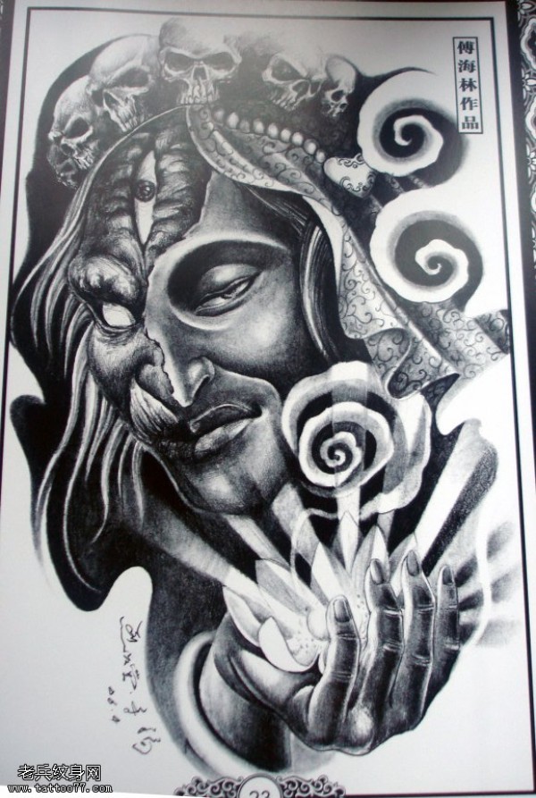 能面万媚纹身手稿_52张日式能剧面具纹身手稿图案素材欣赏