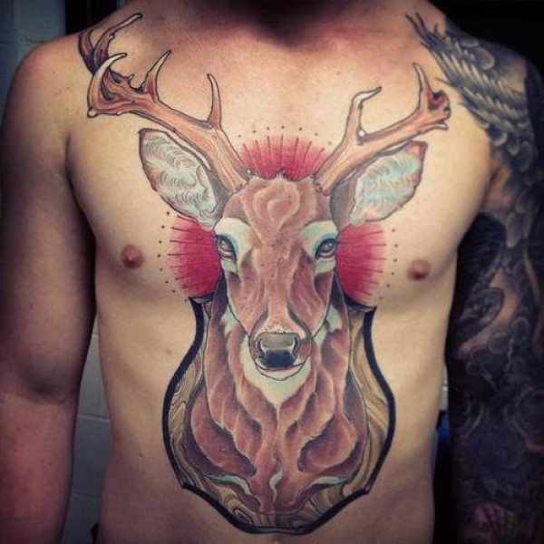 胸部帅气时尚的鹿头纹身