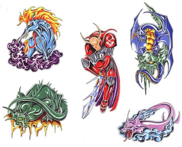 龙纹身手稿_一组老传统黑灰龙手稿纹身图案