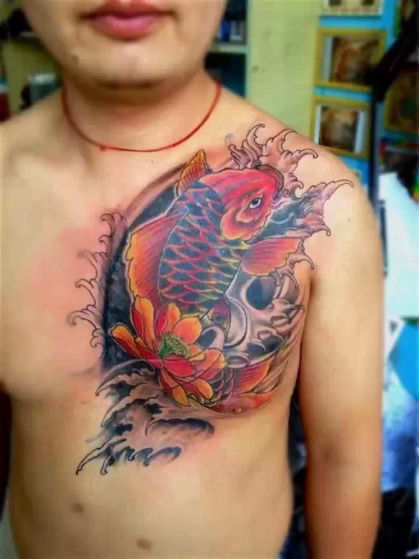 胸部好看的鲤鱼纹身