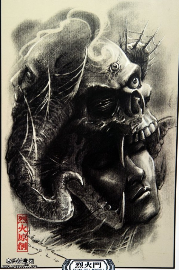一款恐怖的鬼头纹身图案