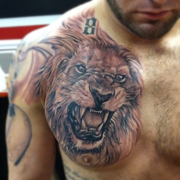 胸部霸气的狮子头像纹身