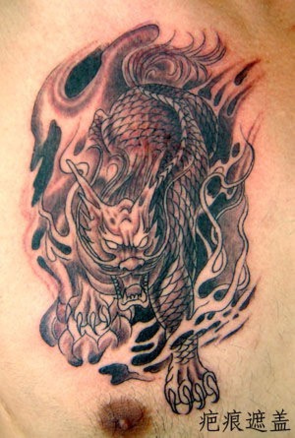 龙纹身手稿_一组老传统黑灰龙手稿纹身图案