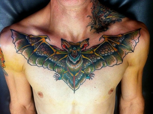 胸部个性张扬的蝙蝠纹身
