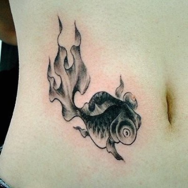 腰部创意鱼文身作品