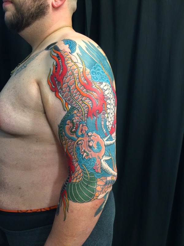日式手彫刺青作品—半甲龙很感谢客户认可手彫刺青,手彫是日本纹身的手工雕刻技术,时间可以追溯到日本17世纪的江户时代。19世纪,手彫技术被日本黑帮挪用,被用作入会仪式,象征着从此就是江湖中人。在日式传统