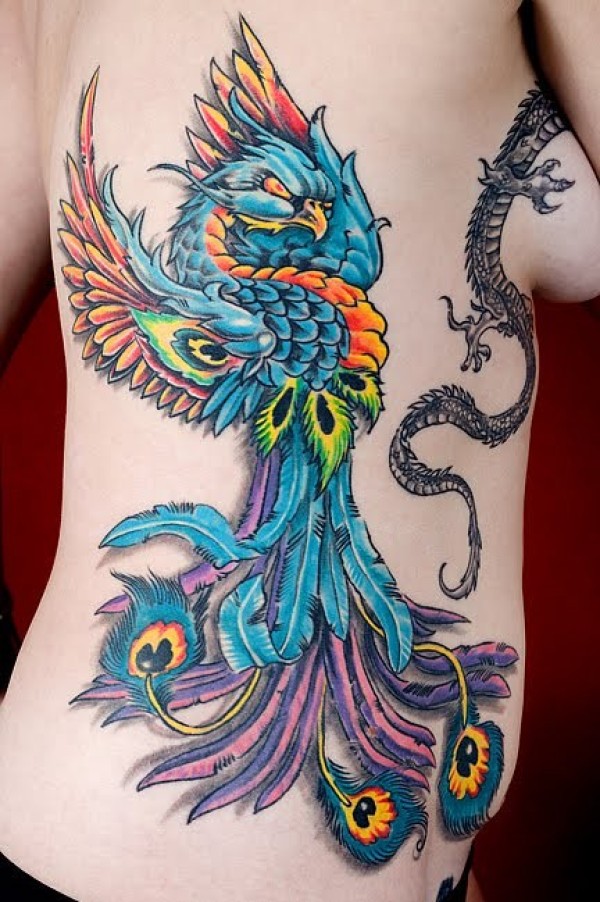 分享一款腰部时尚性感的蝶恋花纹身图案_腰部纹身图案大全_纹身图吧