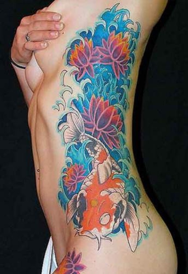女性腰部莲花花纹刺青_腰部纹身图案大全_纹身图吧