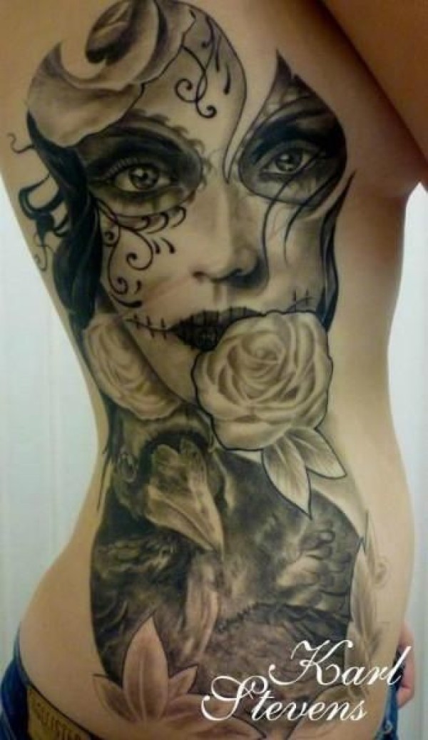 侧腰霸气老虎头纹身_腰部纹身图案大全_纹身图吧
