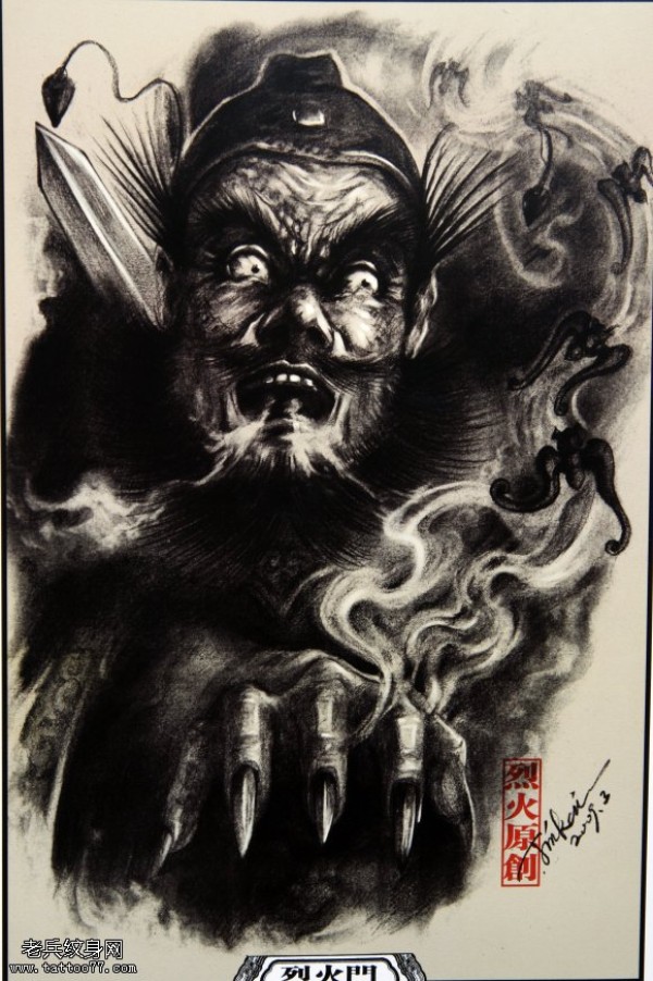 能面万媚纹身手稿_52张日式能剧面具纹身手稿图案素材欣赏