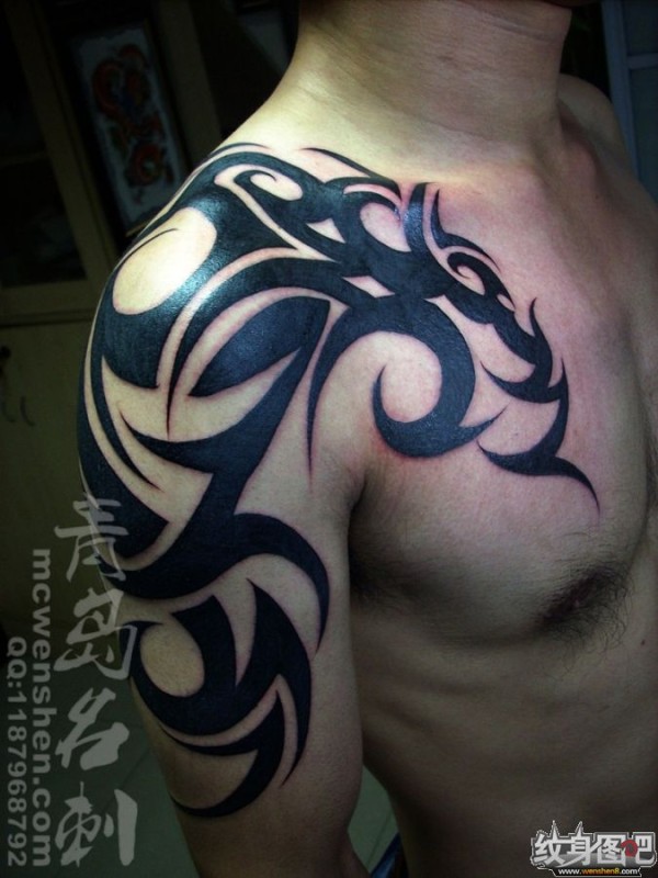 青岛名刺纹身作品 图腾纹身 过肩图腾