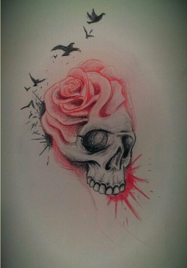 一款个性骷髅玫瑰纹身手稿图案分享图片
